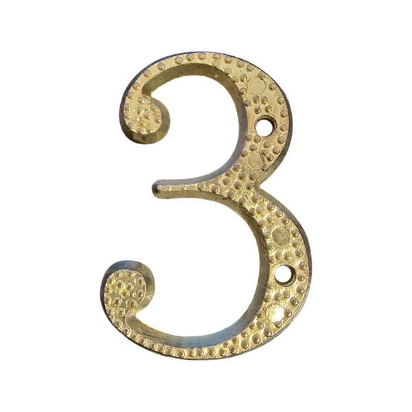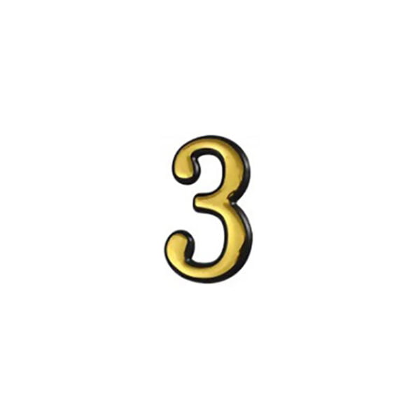 Numar din plastic pentru poarta / apartament, autoadeziv, auriu, 100 mm, cifra 3