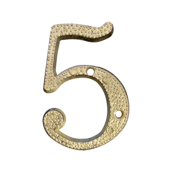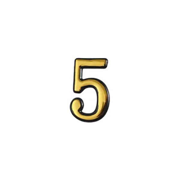 Numar din plastic pentru poarta / apartament, autoadeziv, auriu, 100 mm, cifra 5