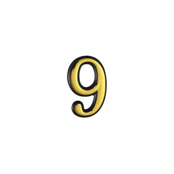 Numar din plastic pentru poarta / apartament, autoadeziv, auriu, 100 mm, cifra 9