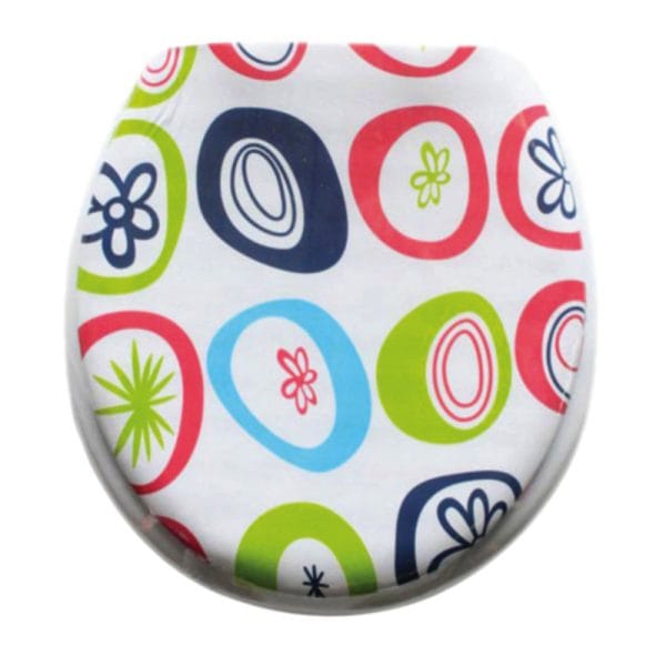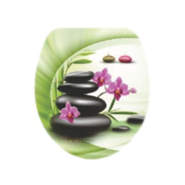 Capac pentru WC universal, cu burete, model floare, roz, 410 x 360 mm