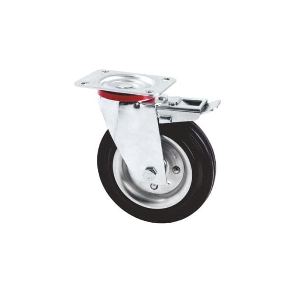 Roata pentru carucior Flores rotativa cu frana, 100mm, placa prindere 100x80mm